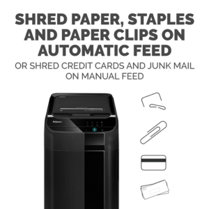 - Optimized for Multi-Material Shredding: Powerfully shred paper, staples and paper clips on auto feed, or shred credit cards and junk mail on manual feed.