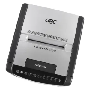 GBC 300M is an autofeed shredder designed for efficiently shredding large volumes of documents in an office setting.
