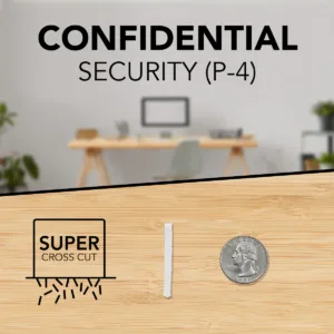The super cross-cut shredder offers versatile shredding of paper, staples, paper clips, credit cards, and CDs/DVDs.