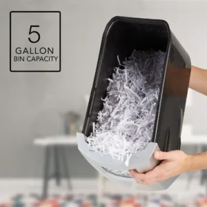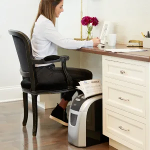 The sleek and compact design of this paper shredder makes it easy to store in tight spaces or corners for quick access.