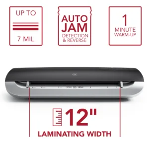 The 12-inch laminating width accommodates a wide variety of projects.