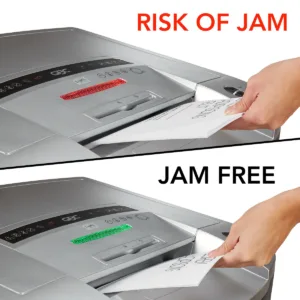 A set of red and green LED lights indicate the maximum paper capacity to prevent jams and blockages in the feed.