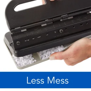Capable of punching through up to 24 sheets of paper at once, this heavy-duty punch creates clean 9/32” holes effortlessly.