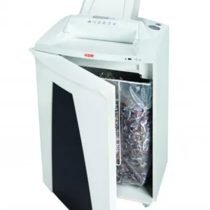 The HSM Securio AF500c auto-feed paper shredder destroys up to of 500 sheets as well as single sheets of paper into 3/16″” x 1-1/8″” cross cut particles.