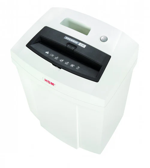 HSM Securio C14c is a cross cut document shredder with steel hardened cutting rollers to cut through 6 sheets of paper in Small & Home Offices.