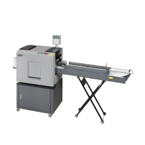 - Large in-feed capacity: the easy-to-load, auto-lift in-feed hopper holds up to 1,400 sheets for time saving throughput processing.