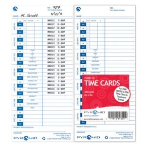 Pyramid 35100-10 Time Cards 100/pack For Pyramid 3000HD, 3500, 3550SS, 3600SS, 3700 Time Clocks