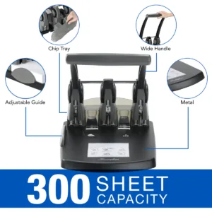 With its durable construction and precision mechanism, the punching machine cleanly pierces through 300 sheets in 2 easy motions.
