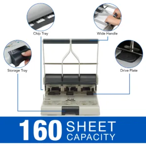 The GBC puncher has an impressive paper punching capacity of 160 sheets in one pass.