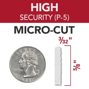 - Micro-cut shredder meets high security needs, with Level P-5 security for shredding sensitive documents.