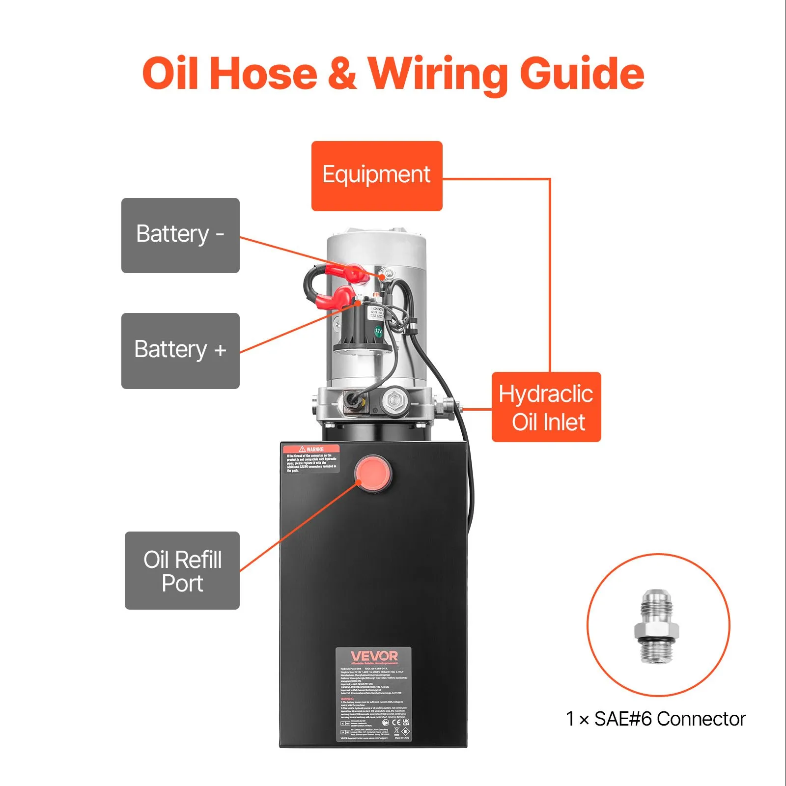 VEVOR 10 Quart Hydraulic Power Unit, Single Acting Dump Trailer Pump, 3200 PSI Max Relief Pressure & 0.91 GPM Flow Rate, DC 12V Hydraulic Pump with Metal Reservoir for Dump Trailer Car Lifting