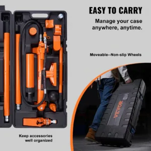 Perfect for All Your Needs: The portable hydraulic ram kit includes everything you need to complete your repair work! Hydraulic pump, hydraulic ram, 4pcs extension tubes, serrated saddle, rubber head, V-shaped head, wedge head, connector, flat base, hydraulic spreader, spreader ram toe, plunger toe. You will be ready to take on any project without breaking a sweat.