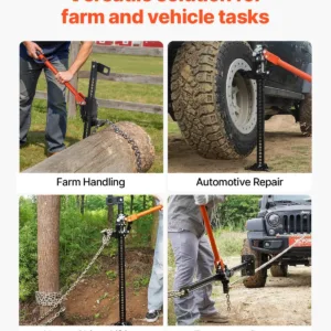 High Load Capacity: The heavy-duty farm jack has a maximum load capacity of 7,000 lbs / 3.18 Ton, easily handling lifting tasks for heavy vehicles or large objects. It’s suitable for lifting, pulling, clamping, winching, and spreading.