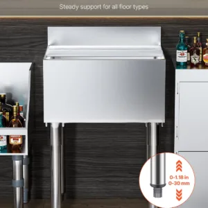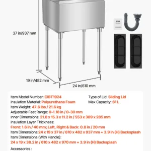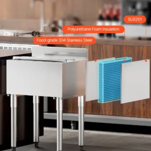Quality Materials: Constructed with 304 food-grade stainless steel and featuring polyurethane foam insulation, our underbar ice bin delivers up to 24 hours of superior temperature retention. It effectively maintains internal cold storage while being For added security protection