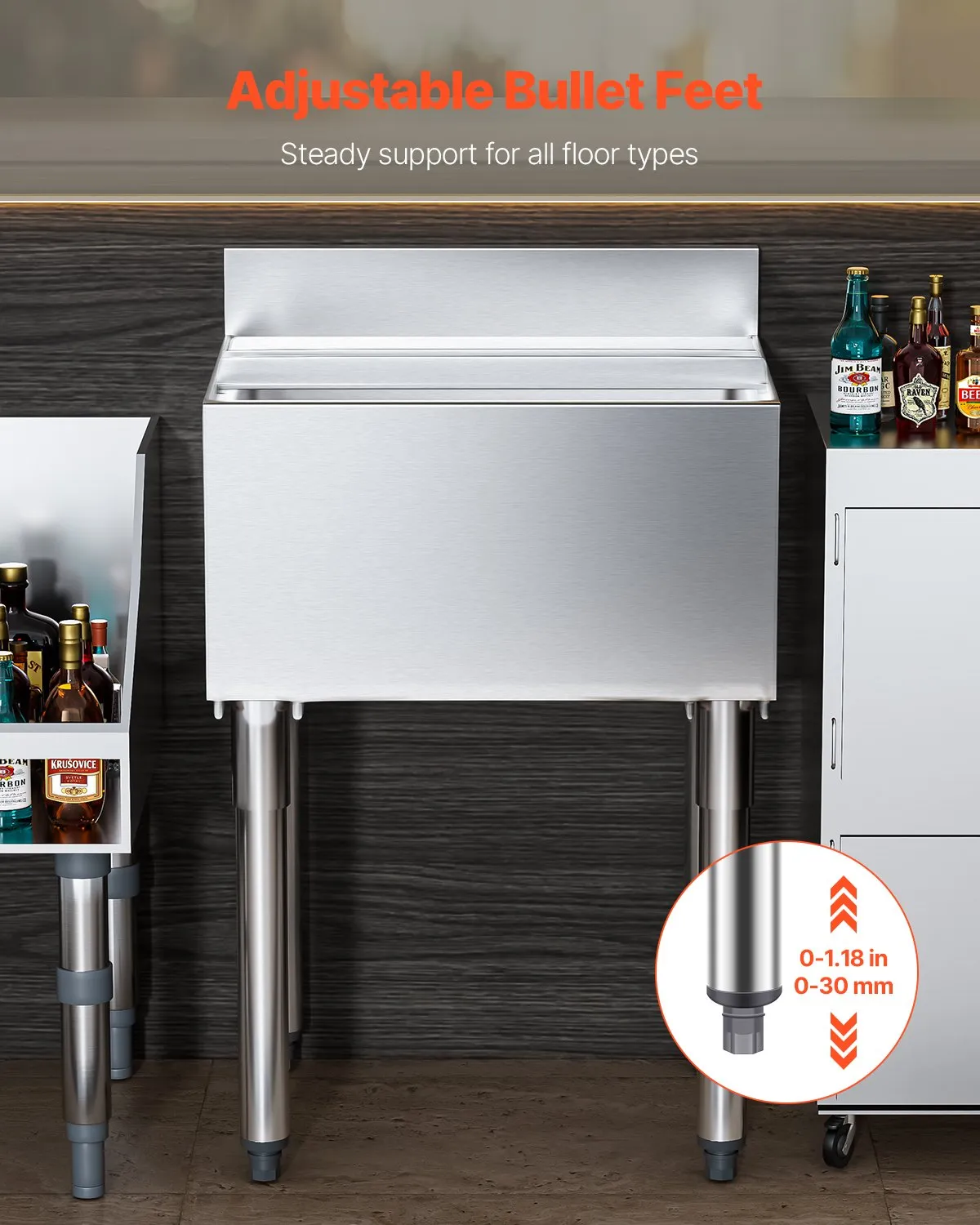 VEVOR CIBT1924 Commercial Ice Bin, 61 L Underbar Ice Bin, 24 x 19 x 37 in Stainless Steel Ice Chest with Sliding Lid, Bottle Holders, Adjustable Bullet Feet, Cooler Cart Cocktail Unit for Bar Restaurant Pub