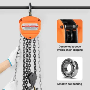 Effortless Operation: Compact and user-friendly, this manual chain block hoist only requires 340N of pull force when fully loaded. The deep groove design keeps the chain secure, saving time on repairs and making lifting easy.