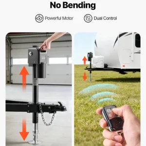 Dual-Mode Controls: The dual-mode system of our electric tongue jack pairs a rocker switch with a handheld remote, so you raise or lower from near or far, cut bending, and keep hands comfy during setup.