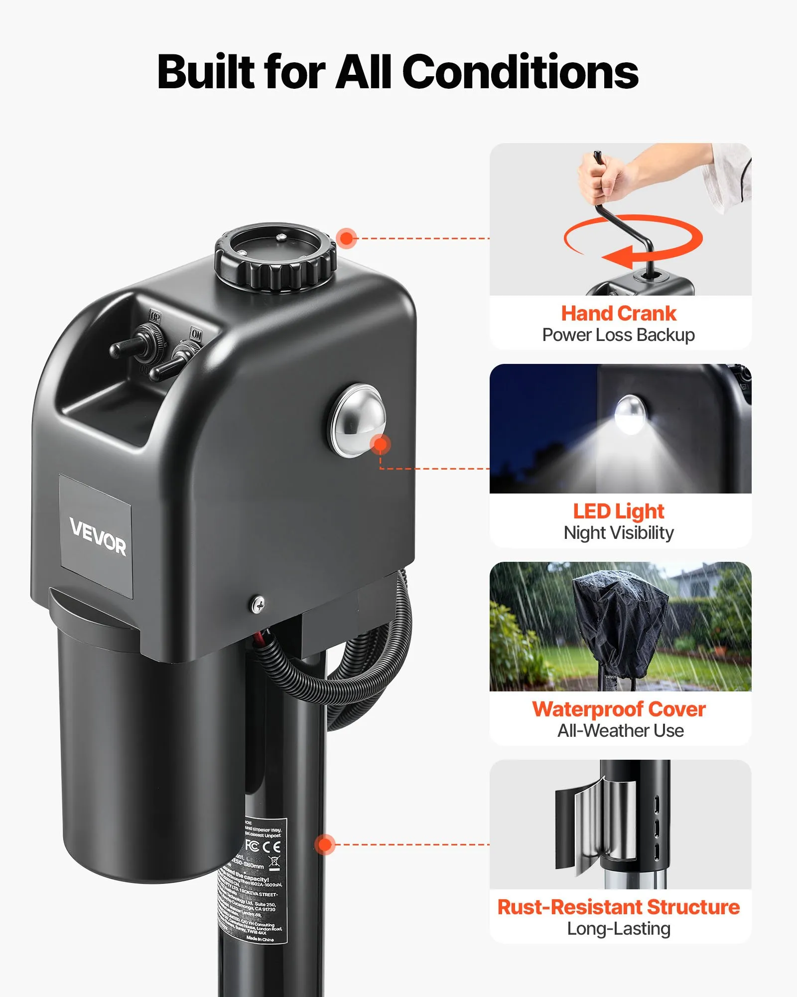 All-Around Protection: This electric camper jack combines coated inner/outer tubes with a weather cover. An LED work light supports low-light tasks, and a top crank allows manual lift during power loss for added peace of mind.