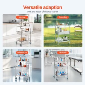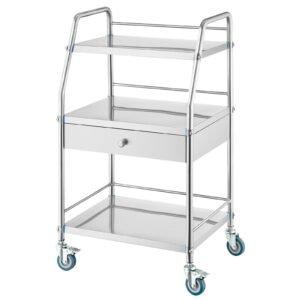 VEVOR K-SUS1002 Lab Rolling Cart Dental Lab Serving Cart 3 Tiers Drawer Stainless Steel