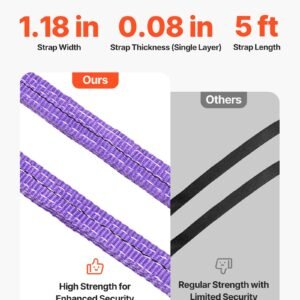 Premium Polyester Strap: Made from high-strength polyester material, the polyester strap for lifting is 1.18 in wide, 0.08 in thick, and 5 ft long. It offers excellent tensile strength and flexibility, resisting deformation for enhanced security and reliability during lifting operations.
