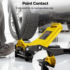 Foot Pedal Control: This low profile floor jack features an upgraded foot pedal for quick lift arm positioning under no load. The pedal helps align the jack with vehicle lift points efficiently. Note: No-load use only—never use the pedal to lift a vehicle.