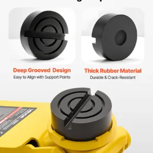 SUV Adapter: Our hydraulic floor jack includes an SUV rubber a.dapter sized 2 x 1.4 in (50 x 36 mm). The grooved design aligns with SUV lift points. Thick rubber construction resists cracking and helps ensure stable lifting.