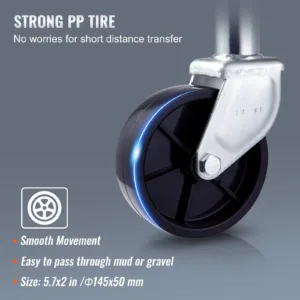 Powerful PP Tire: The trailer tongue jack is equipped with a PP tire that provide a larger surface area for smooth and stable movement. The tire is more stable and less prone to sinking. It can withstand mud, gravel, and sharp rocks without getting stuck or damaged. The tread pattern helps prevent sliding on wet surfaces.