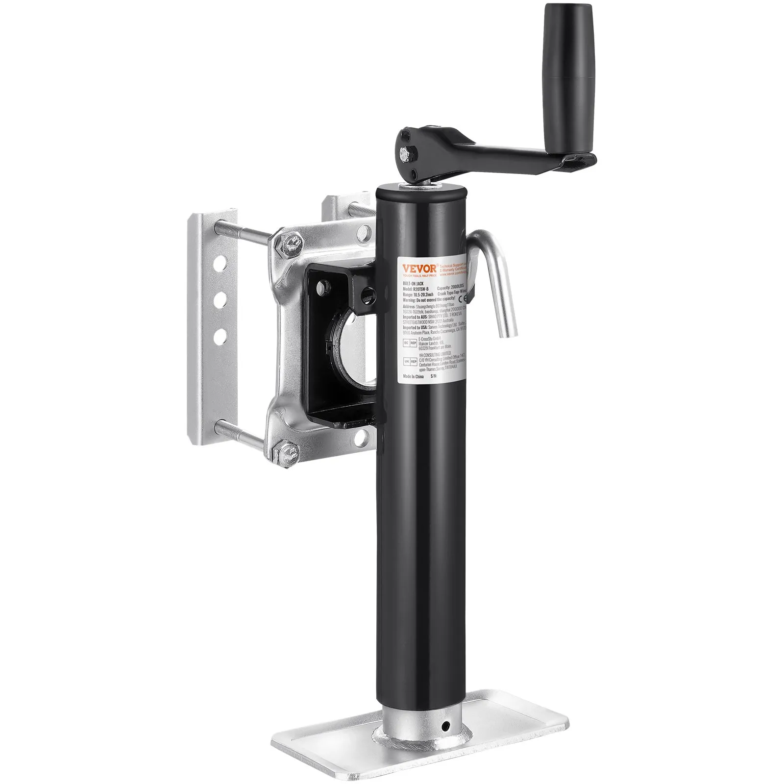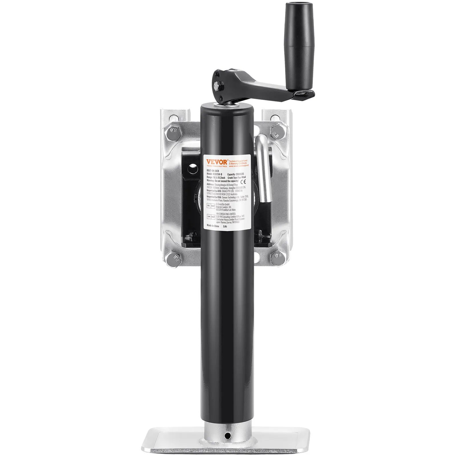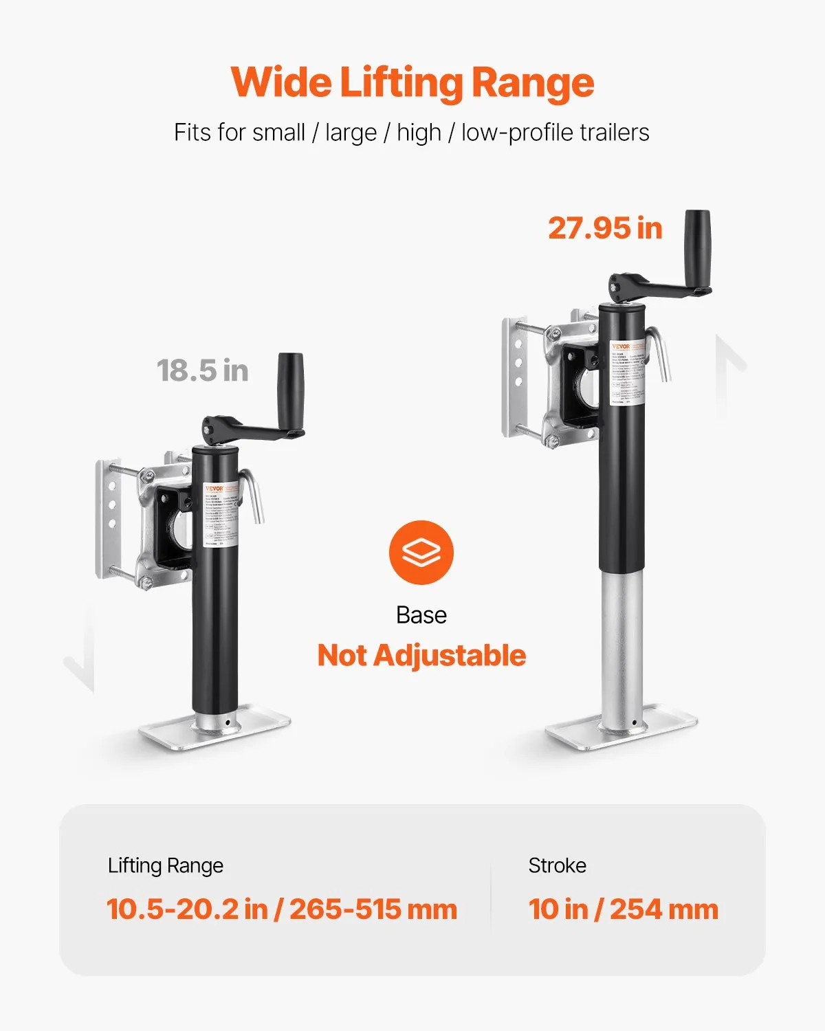 Heavy-Duty Load Capacity: The trailer jack boasts an impressive lifting capacity of 2000 lbs, making it a powerful tool for lifting tasks. With a lifting range of 10.5 to 20.2 inches, it fits both high-profile and low-profile trailers.