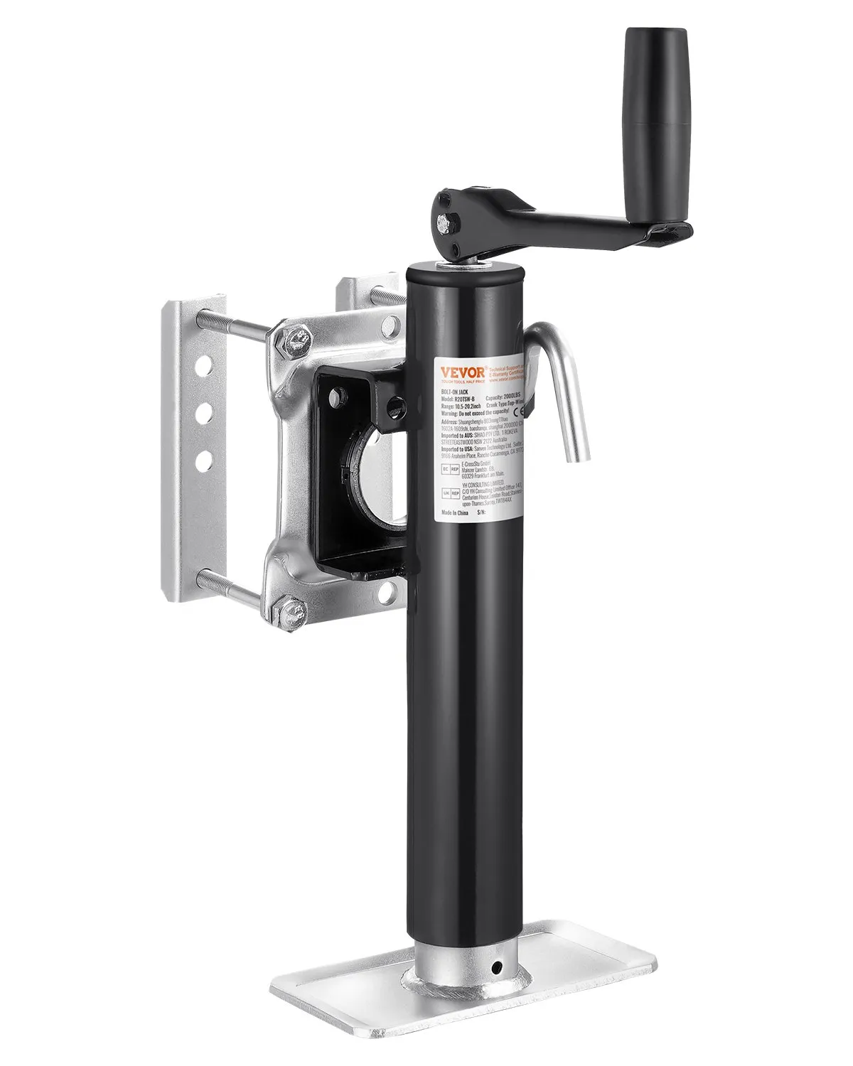 VEVOR R20TSW-B Trailer Jack, 2000 lbs Dynamic Load Capacity, Heavy Duty Swivel Bolt-on Trailer Jack, 10″ Lift Trailer Jack Stand with Handle for RV Trailer, Horse Trailer, Utility Trailer, and Yacht Trailer