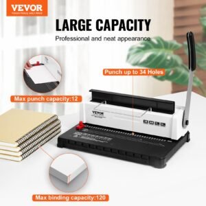 The VEVOR coil spiral binding machine allows you to bind up to 120 sheets at once. This feature is ideal for both home and office use. The machine’s efficiency saves time and effort. It is designed to handle various paper sizes, including A4 and A5. In addition, the strong construction ensures long-lasting performance. The welding process is smooth and reliable. You should have this machine when you need to keep documents in order because it has a good design and efficient operation. So, it’s an incredibly useful tool for any setting.