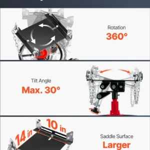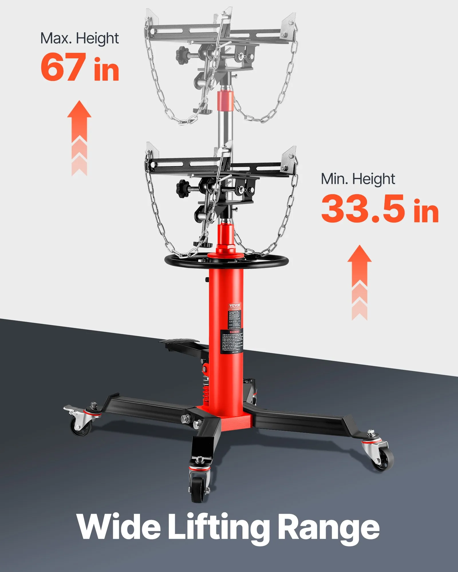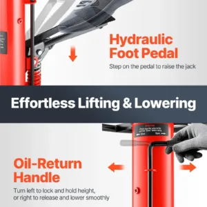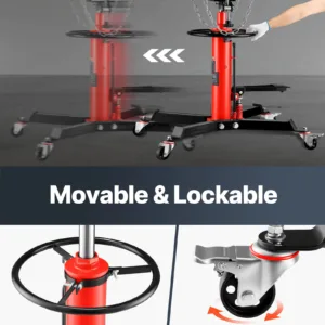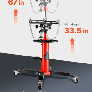 33-1/2″ -67″ Lifting Range: Enhanced hydraulic pressure for an extended lifting range, the pedestal transmission jack with a 33-1/2 inch to 67 inch lift range, our jack can lift your car to any suitable height. Comes with a foot-operated pedal, so it’s easier to rise, and free up your hands.