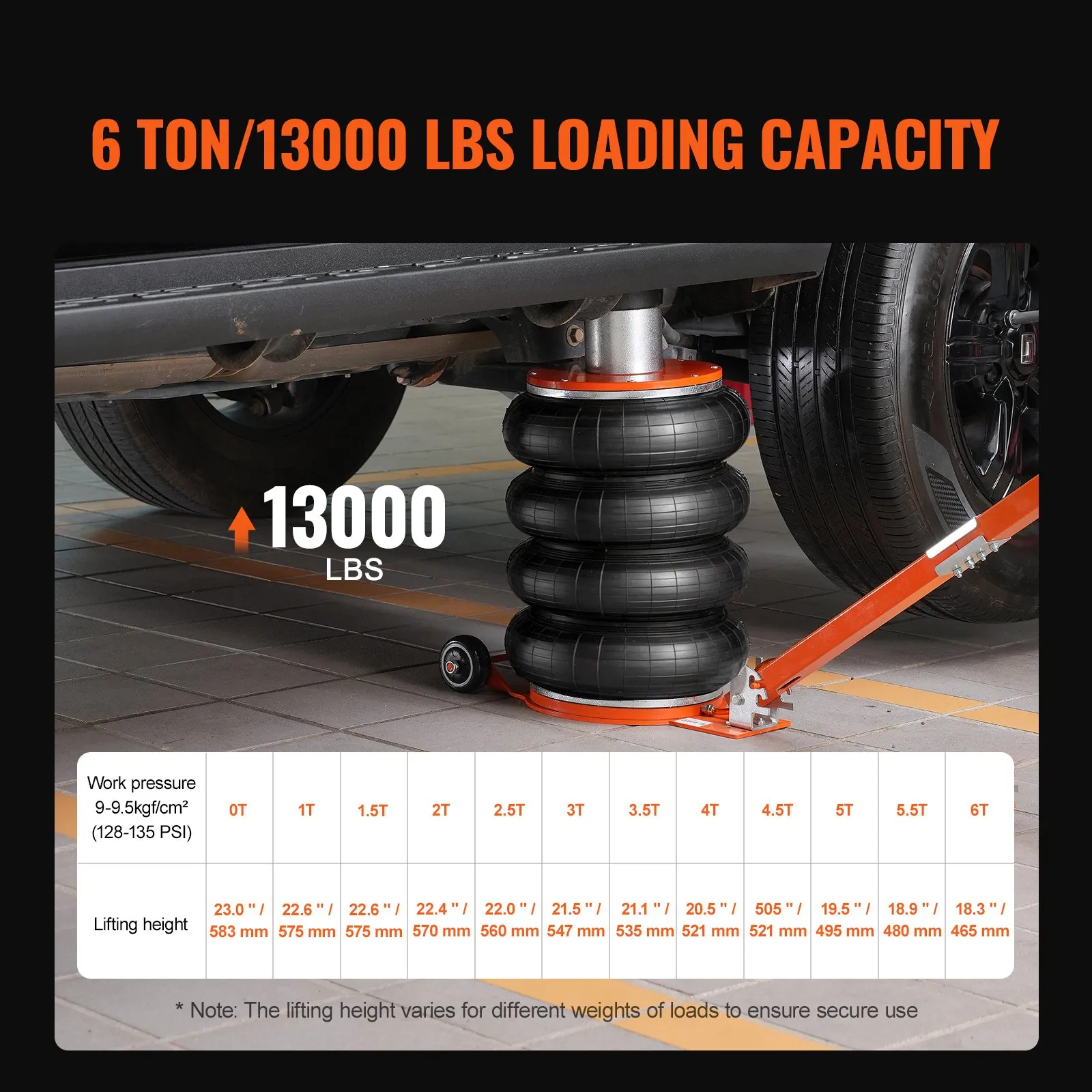 6 Ton Strong Load Capacity: Our portable airbag jack has 6 Ton/13000 lbs high load capacity, which is able to support and help you lift most of the family or commercial vehicles, such as family sedans, pickup trucks, micro trucks, SUVs and so on.